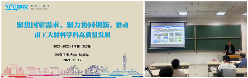 11月17日下午两点,本学期书院大讲堂第3期讲座于明达楼102教室开讲。本期讲座由九游会·J9材料科学与工程学院院长陆春华教授主讲,皋春副院长主持,2021级全体同学参加。