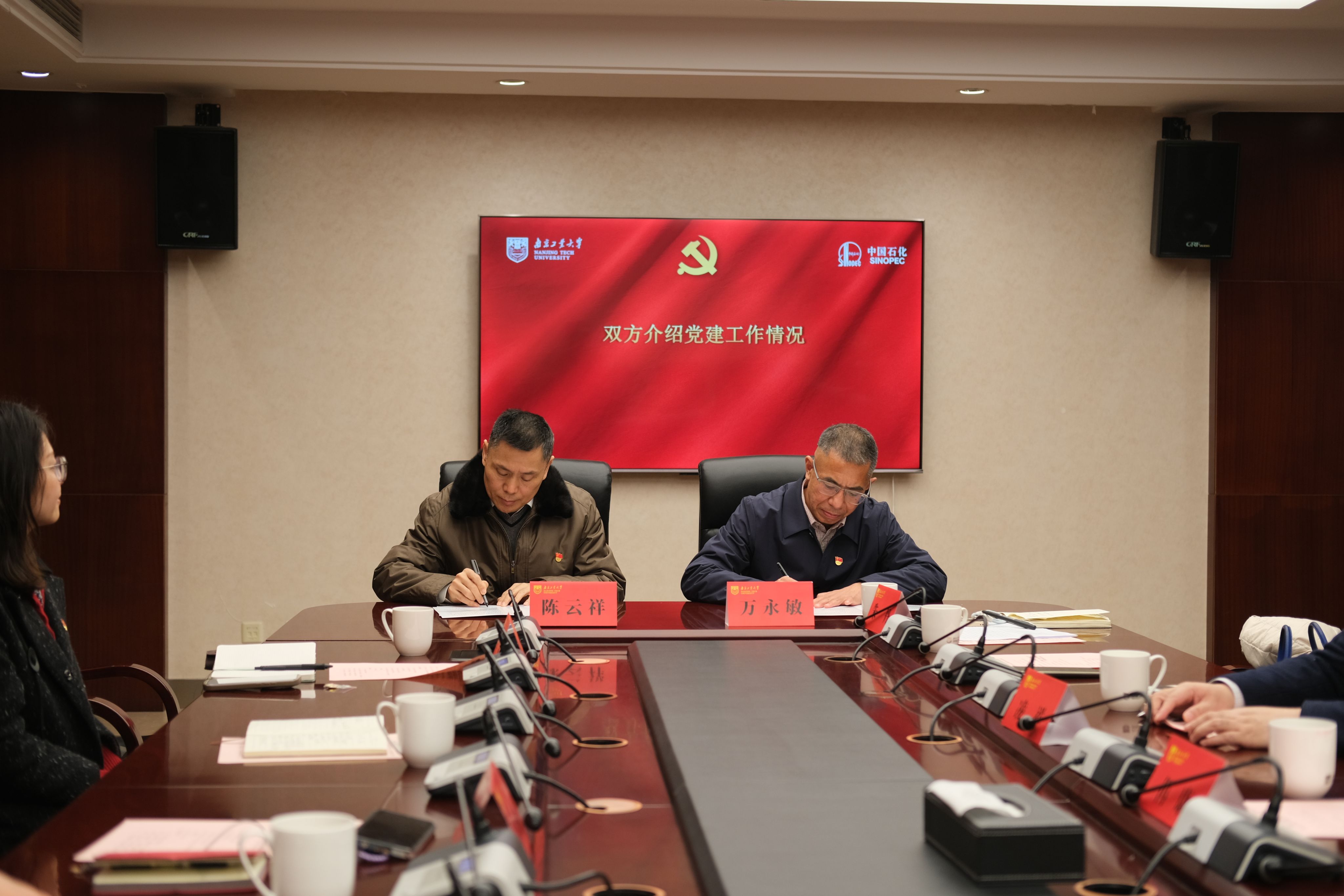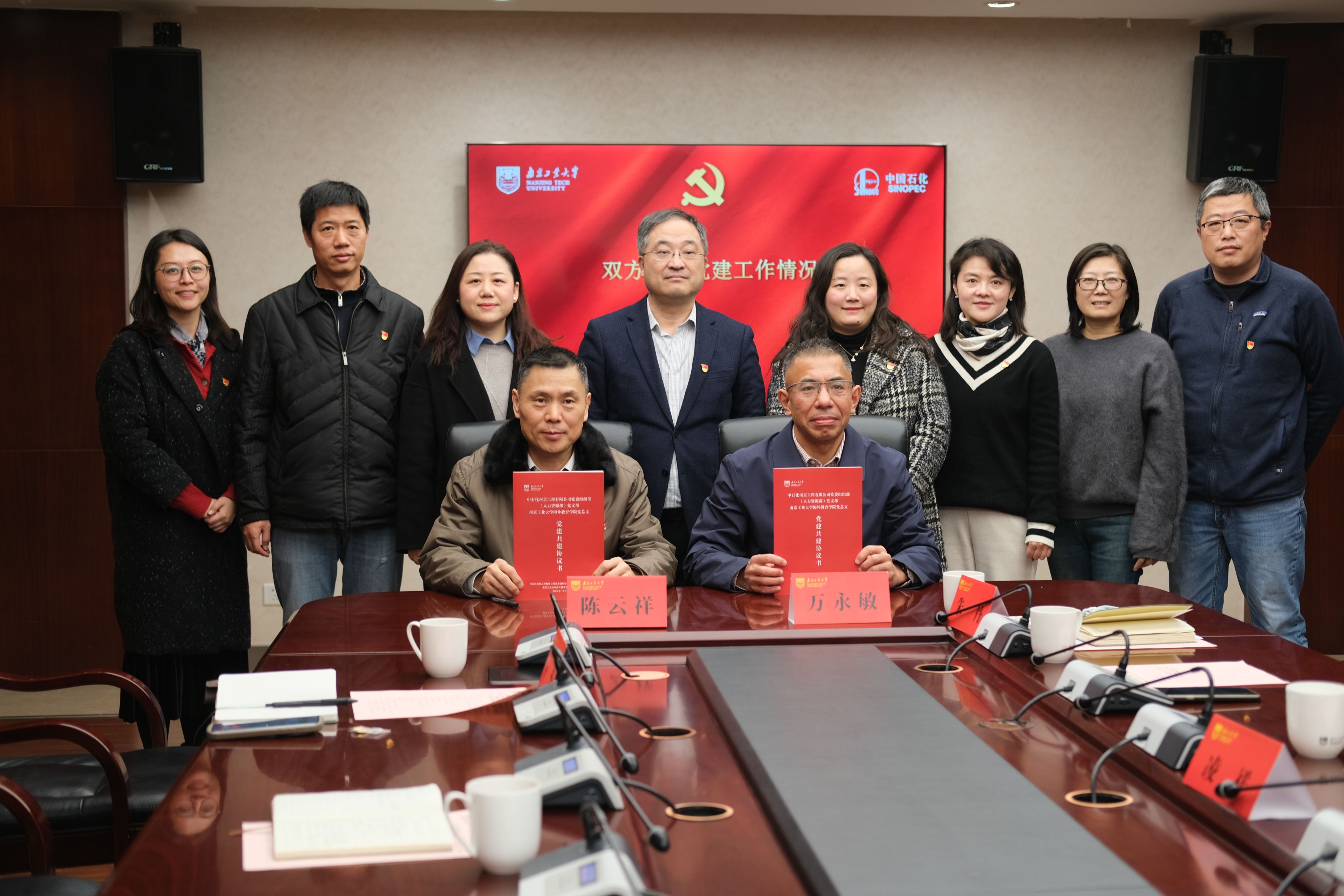 学院党总支书记万永敏和中石化南京工程有限公司党委组织部(人力资源部)党支部书记陈云祥分别介绍了双方的党建工作和特色项目建设情况,校企双方思想高度统一、达成一致,以党建引领促进业务工作,携手共建深化合作,双方签署了党建共建协议书。