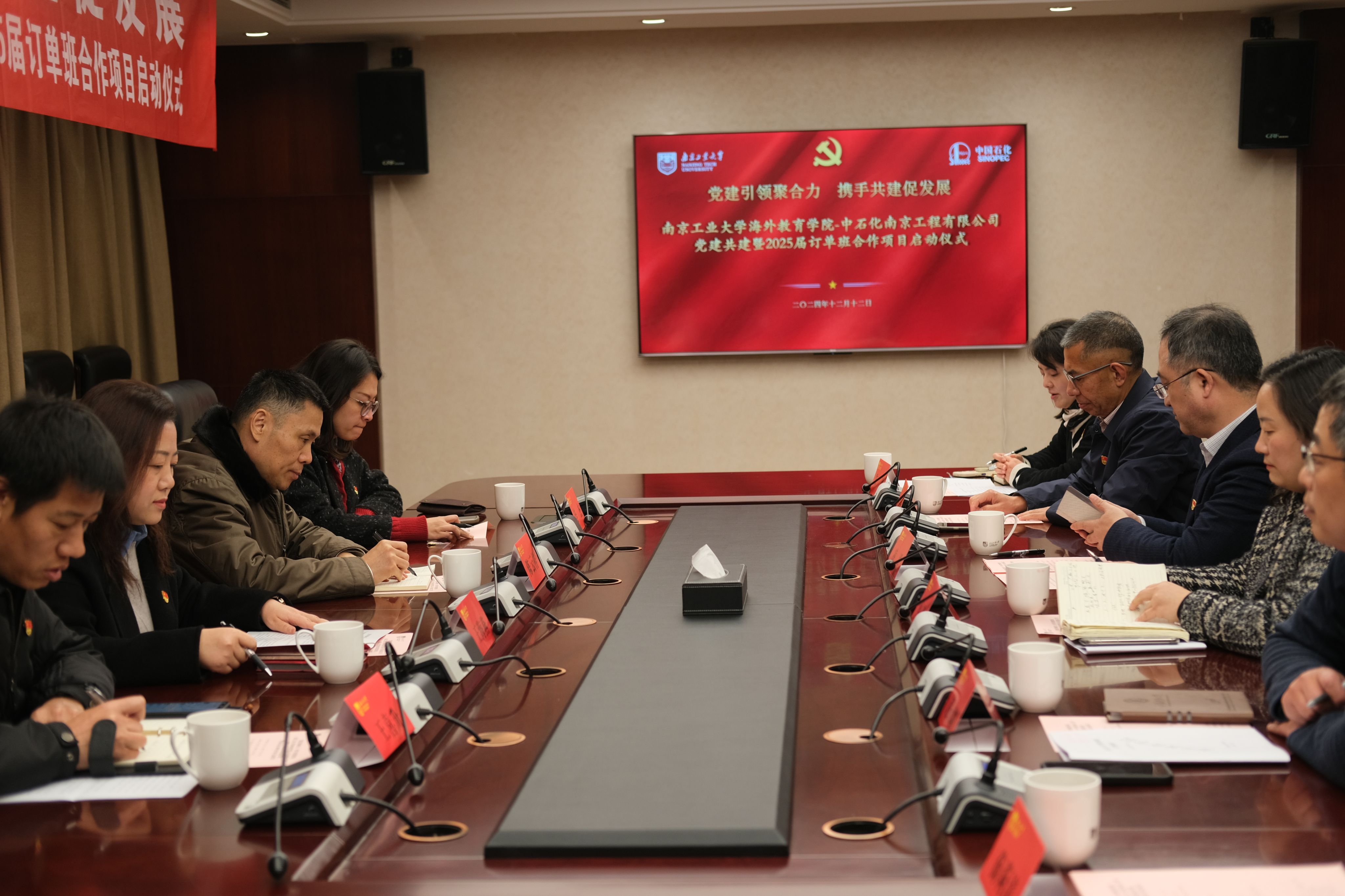 12月12日下午,海外教育学院党总支与中石化南京工程有限公司党委组织部(人力资源部)党支部党建共建暨2025届订单班合作项目启动仪式在明正楼117会议室举行。校党委常委、副校长凌祥出席会议。会议由海外教育学院副院长朱丹主持。