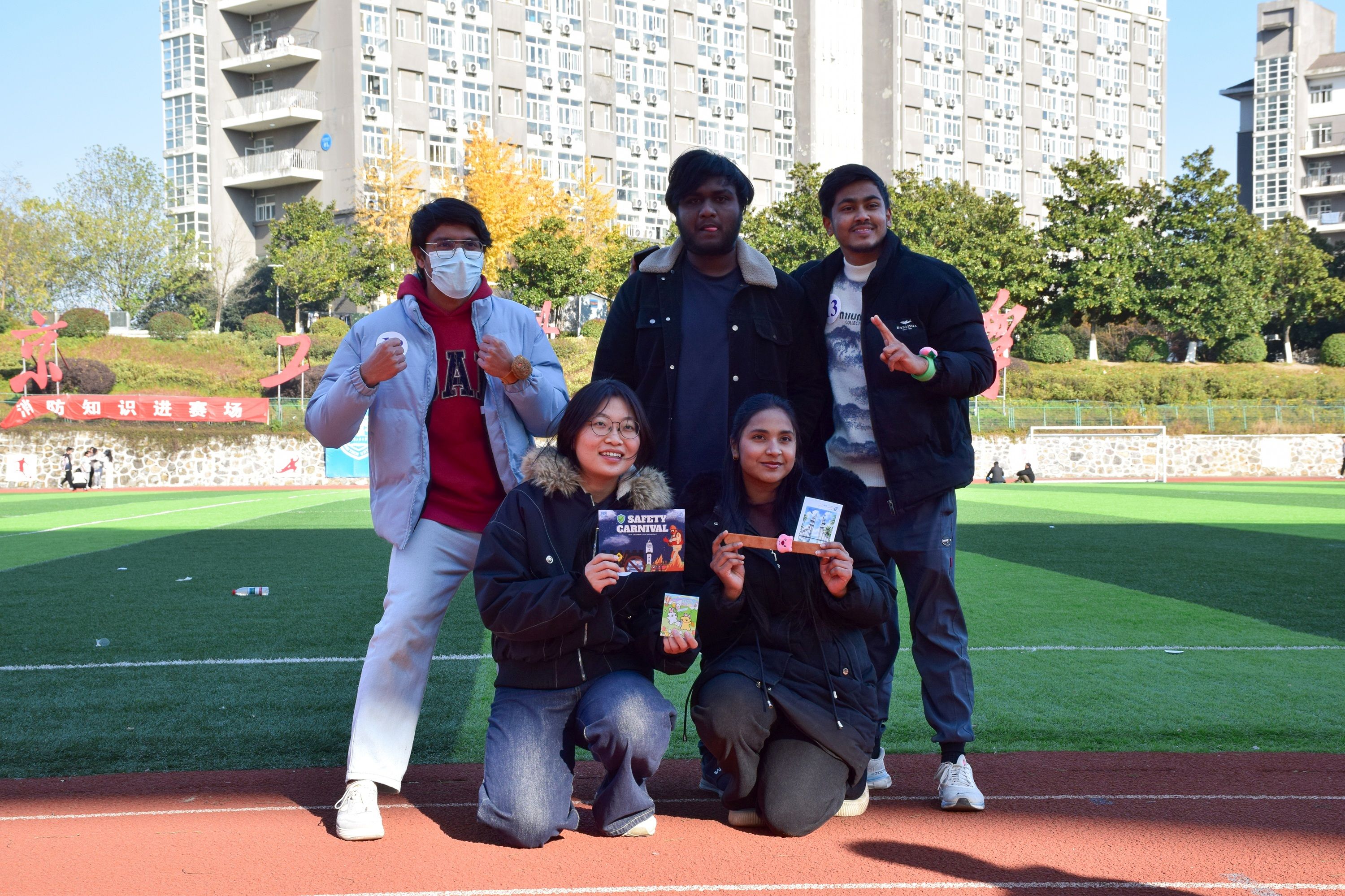 为提高来华留学生安全防范意识,增强其应对各类安全风险的能力,12月3日下午,海外教育学院在行健体育场举办“安全冒险家•闯关嘉年华”主题教育活动。本着安全无国界、守护有共识的思想,活动面向中外学生,海外教育学院特邀经济与管理学院的学生参加。活动自发布以来反响热烈,吸引了来自22个国家、150余名学生报名,经过选拔,最终16支队伍,共计80名中外学生参赛。