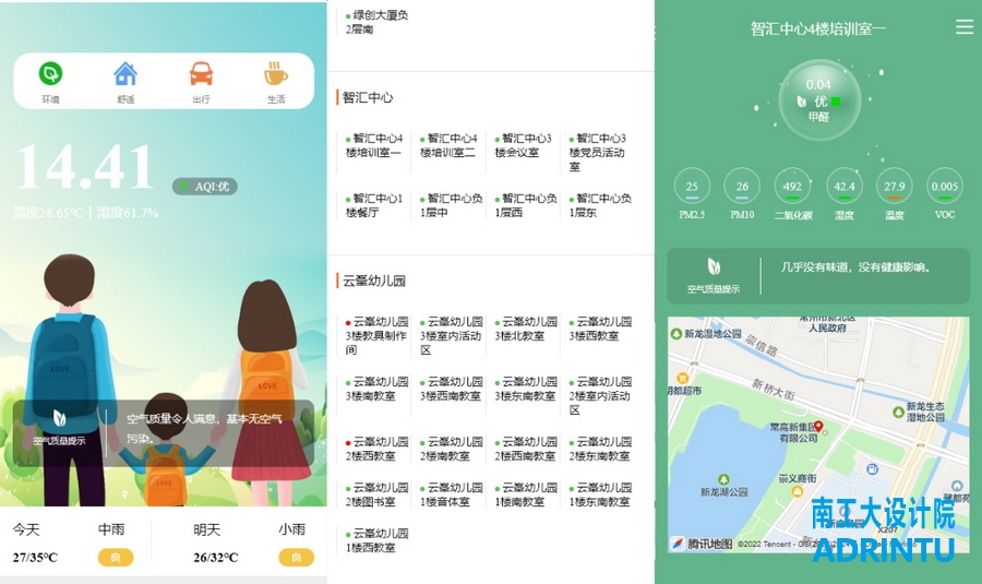 采用污水源热泵能源换热站、屋面太阳能集热器、排风热回收系统等可再生能源建筑应用技术及高能效设备应用,主动节能开源;应用建筑智能化系统,实时监测室内外空气品质,接入常州市绿色宜居城区智慧感知平台,用户通过微信小程序可实时查询了解室外环境质量、室内空气质量、周边交通和配套服务设施情况,实现建筑智慧化运营;应用能耗监测系统,实时采集分类和分项数据,接入常州市建筑能耗监测管理系统平台,对建筑能耗实时监测,并进行系统诊断,确切掌握用能总量及动态变化,指导合理用能。