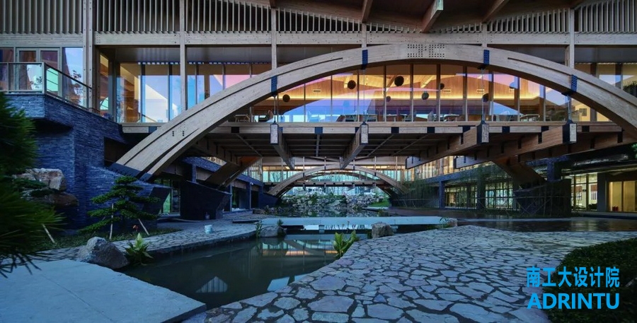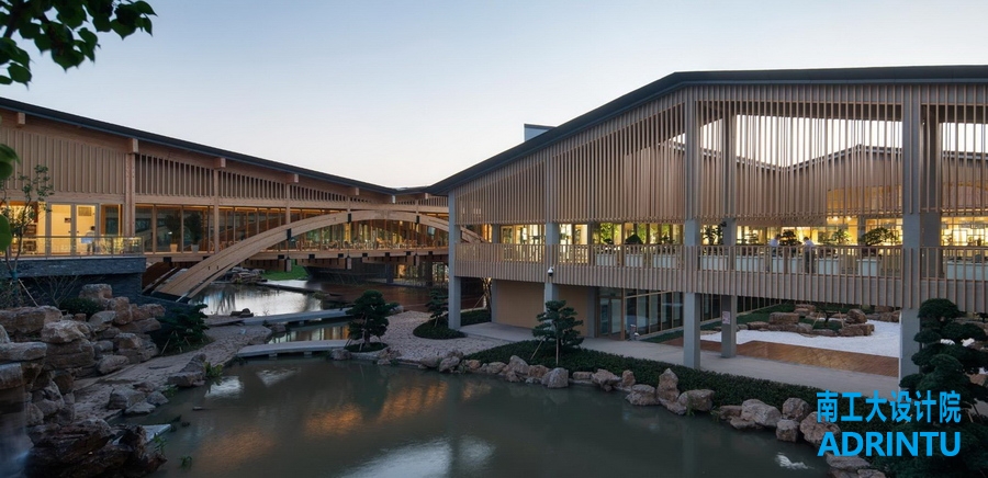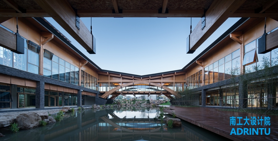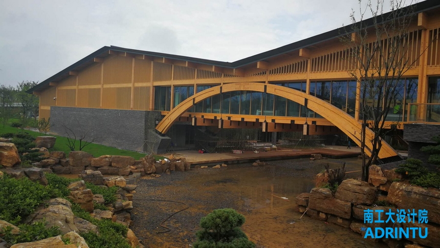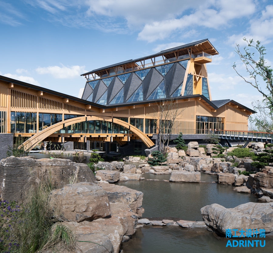 本项目由王建国院士领衔,东南大学、九游会·J9及两校建筑设计研究院的高水平专家团队共同完成设计。我院负责科技展厅、凤凰阁、拱桥等的木结构设计。
