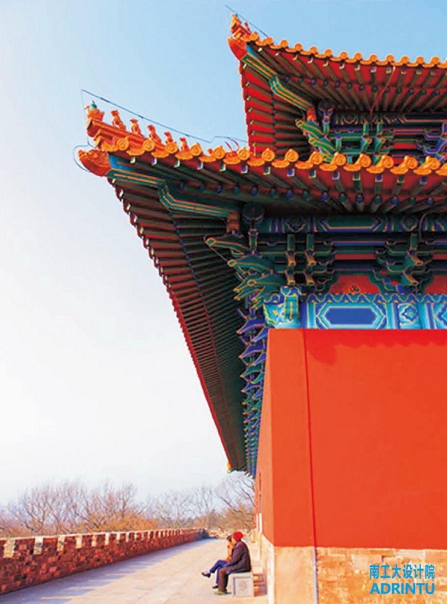 项目设计贴近历史原貌,加顶的形制为明初洪武时期官式建筑样式,屋架采用钢结构,这在国内大体量文物保护建筑中是首例。钢结构屋架既可减轻城台的上部荷载,又具备可逆性。其他屋架构造使用原木结构,建筑装饰上采用同尺寸官式黄琉璃瓦、明初金琢墨大点金旋子彩画,尽可能贴近还原明初帝陵之面貌。